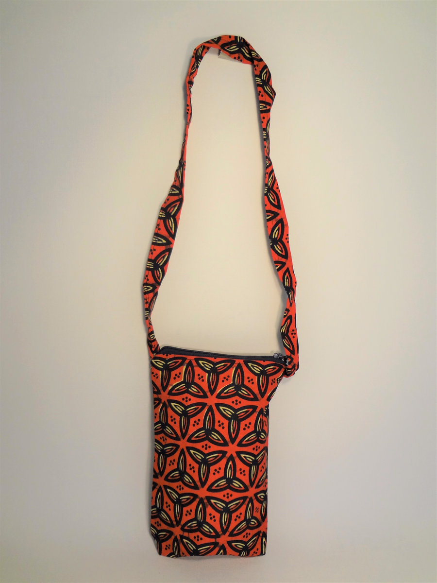 Small handmade out of original Ugandan Kitenge fabric for mobile phone money or make-up, 100% cotton, bag closes with a zipper on top, made in Kampala / Uganda.